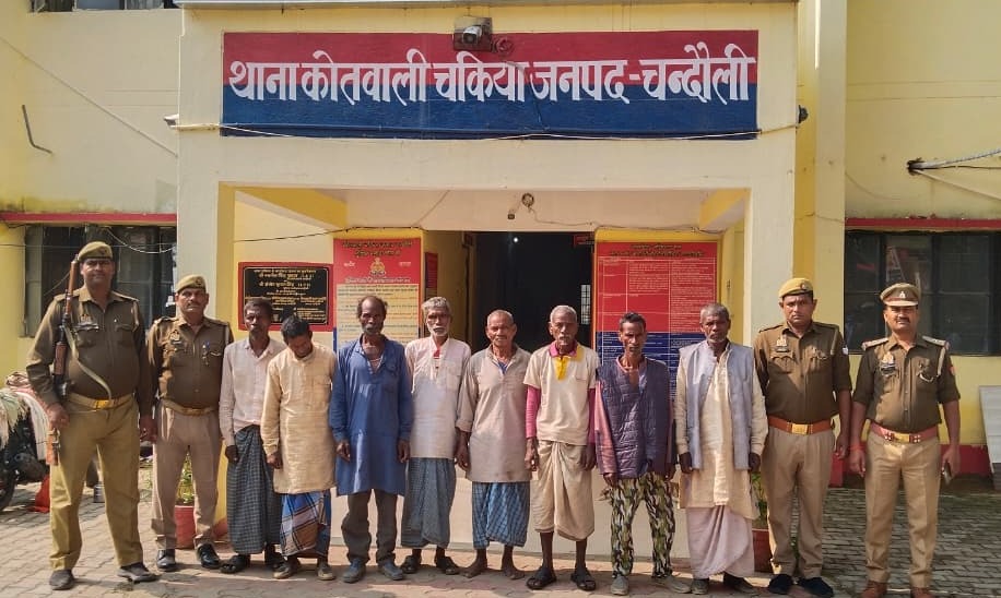 चन्दौली पुलिस ने थाना चकिया क्षेत्र में 8 वारंटी अभियुक्तों को गिरफ्तार किया है। गिरफ्तार अभियुक्तों के नाम बिहारी, सुराहू, हीरा, दुखन्तू, बडा बाढू, रामगति, चौथी और टेंगर हैं। ये सभी अभियुक्त भीषमपुर थाना चकिया जनपद चन्दौली के निवासी हैं।
