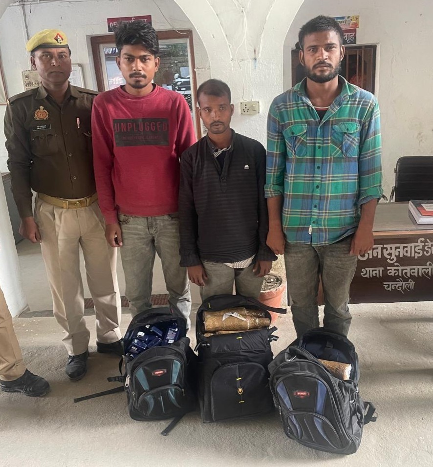 32 लीटर अवैध अंग्रेजी शराब बरामद, 3 तस्कर गिरफ्तार, चन्दौली कोतवाली पुलिस को चेकिंग के दौरान मिली सफलता